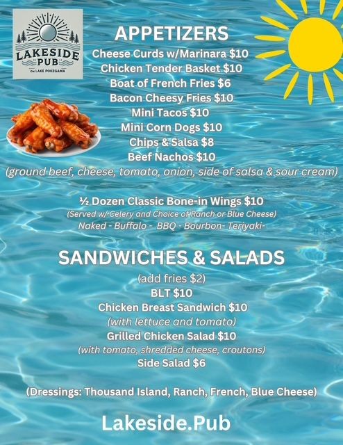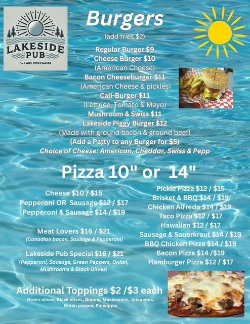 Delicious food, refreshing drinks, and an unbeatable price—only at Lakeside Pub & Arcade!