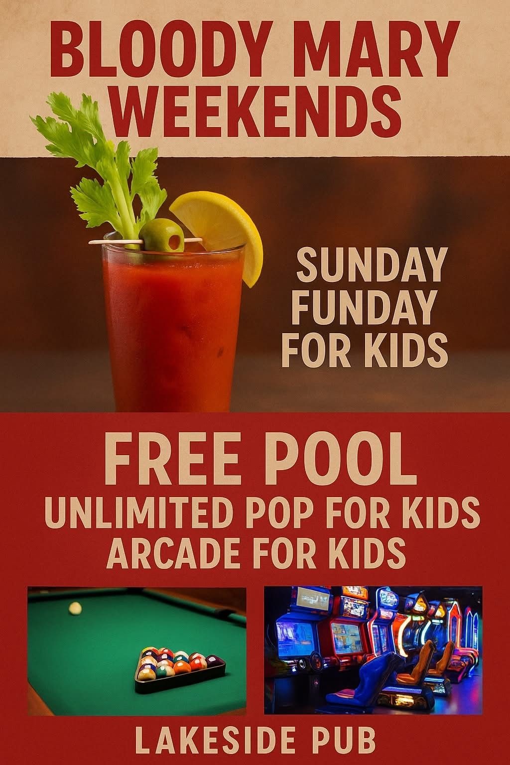 🍹 Bloody Mary Weekends at Lakeside Pub & Arcade! 🍹