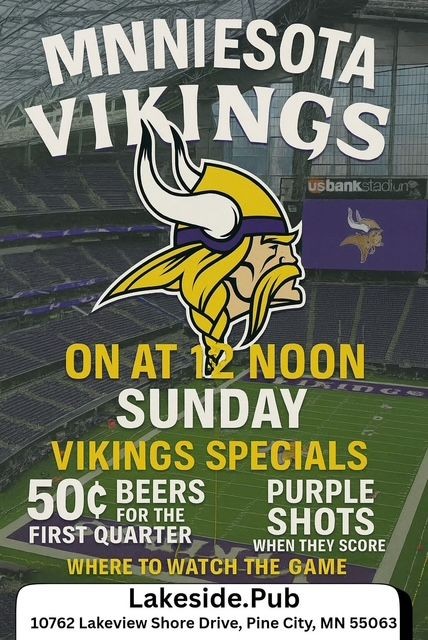 🏈 Catch the Vikings Game at Lakeside Pub & Arcade! 🏈